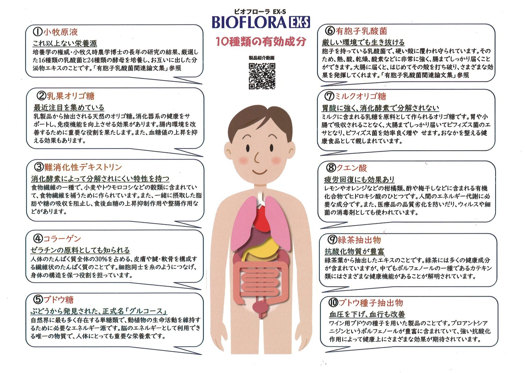 ビオフローラに含まれる10種類の有効成分を分かりやすく説明したチラシが完成いたしました。